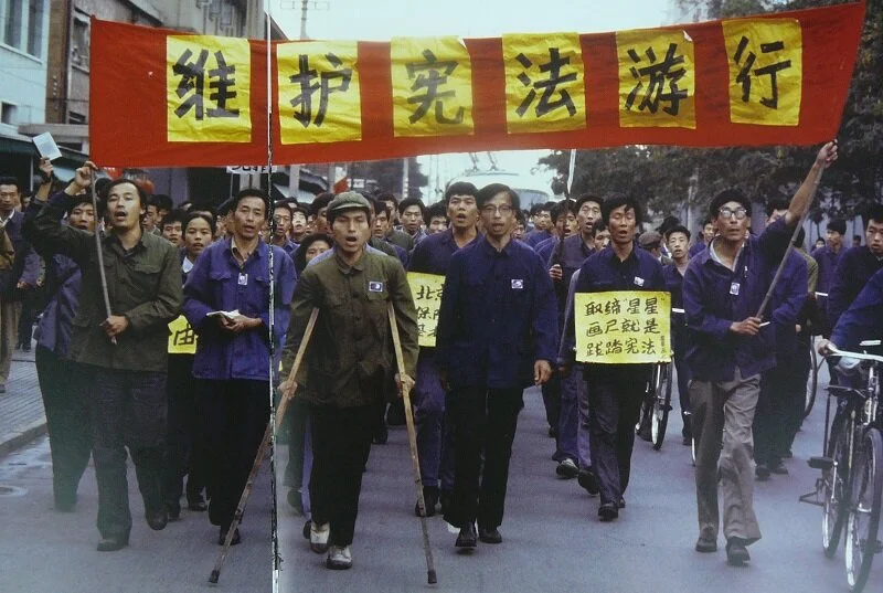 ‘The Xidan district…that was where we young poets and artists got together. Strangers are fused by the sympathy of fate…a simple sentence; express your feelings in your own words’. This quotation from the article of poet Yang Lian perhaps best describes the atmosphere of The Stars art movement. In the context of numerous democracy movements budding up in a time of change; The Stars came together as the first ever contemporary art movement in China, campaigning for freedom of expression in the arts.  ‘In politics we want democracy in art we want freedom’ were the characters painted on their banners as they marched. His work in this period found its roots in a visual diary he began during a time of great suffering and chaos. He later developed these drawings in to oil paintings and collages.